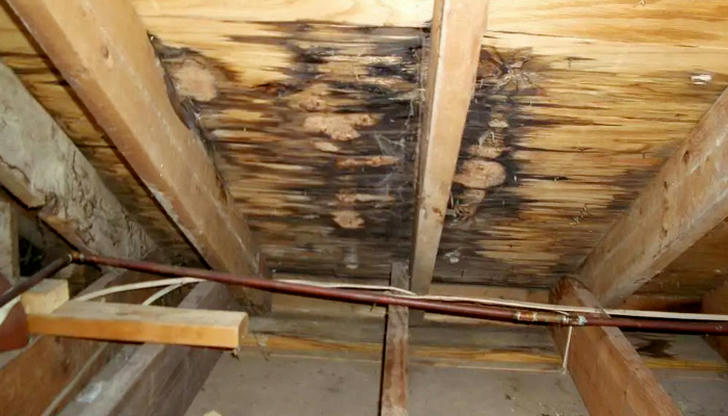 Attics often hide these problems because people rarely inspect them closely. Moisture can remain trapped above the ceiling for long periods, slowly causing mold growth, wood discoloration, and reduced insulation performance.