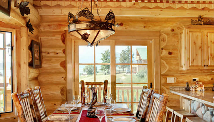 Mix iron, wood, and glass fixtures to add variety --- think wrought-iron chandeliers, lantern sconces, or mason jar pendant lights. Candles (real or flameless) also add an instant cabin glow.